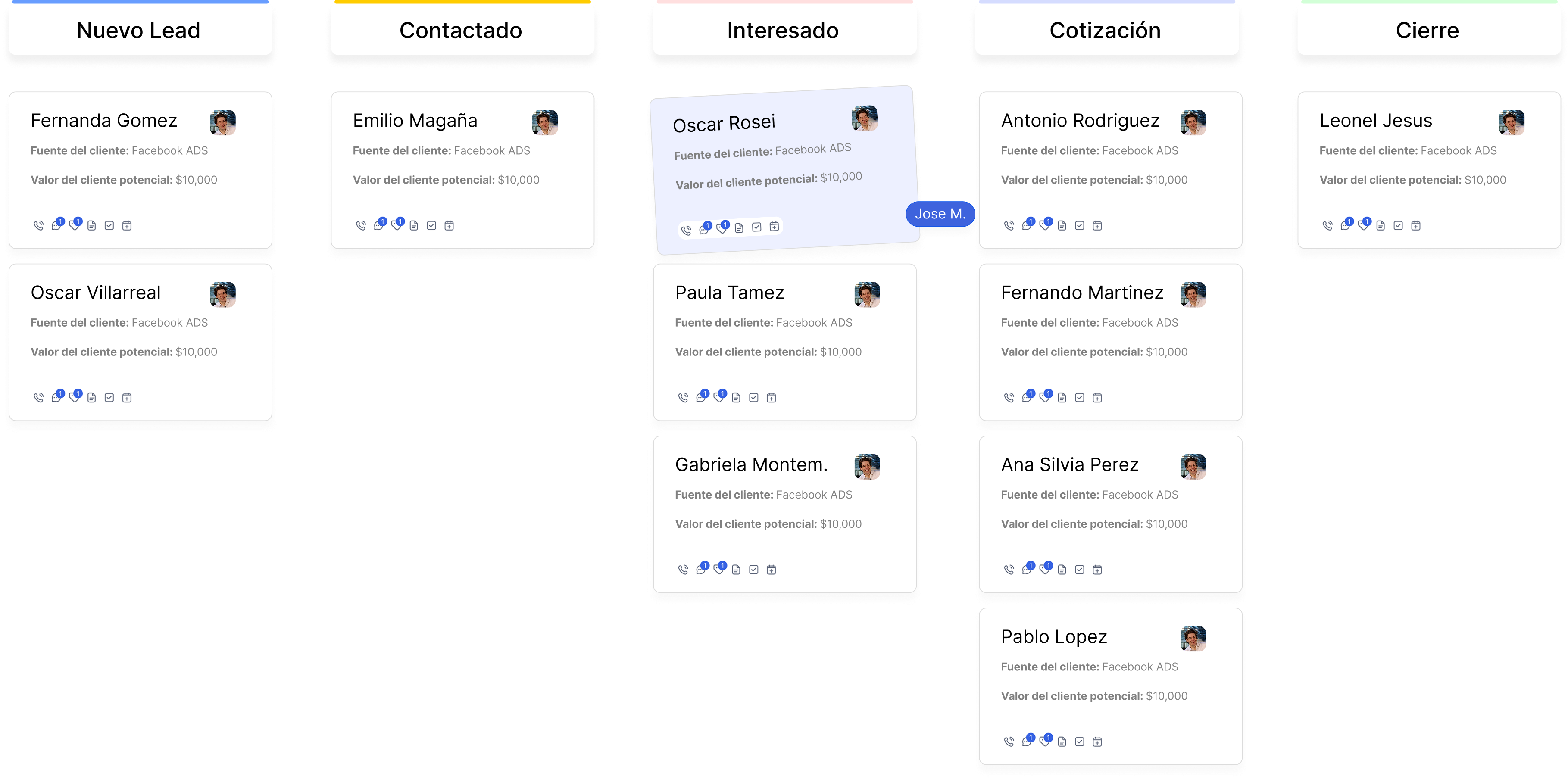 - CRM y embudos (Creación de embudos según procesos comerciales, CRM tipo kanban)